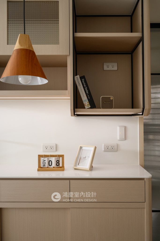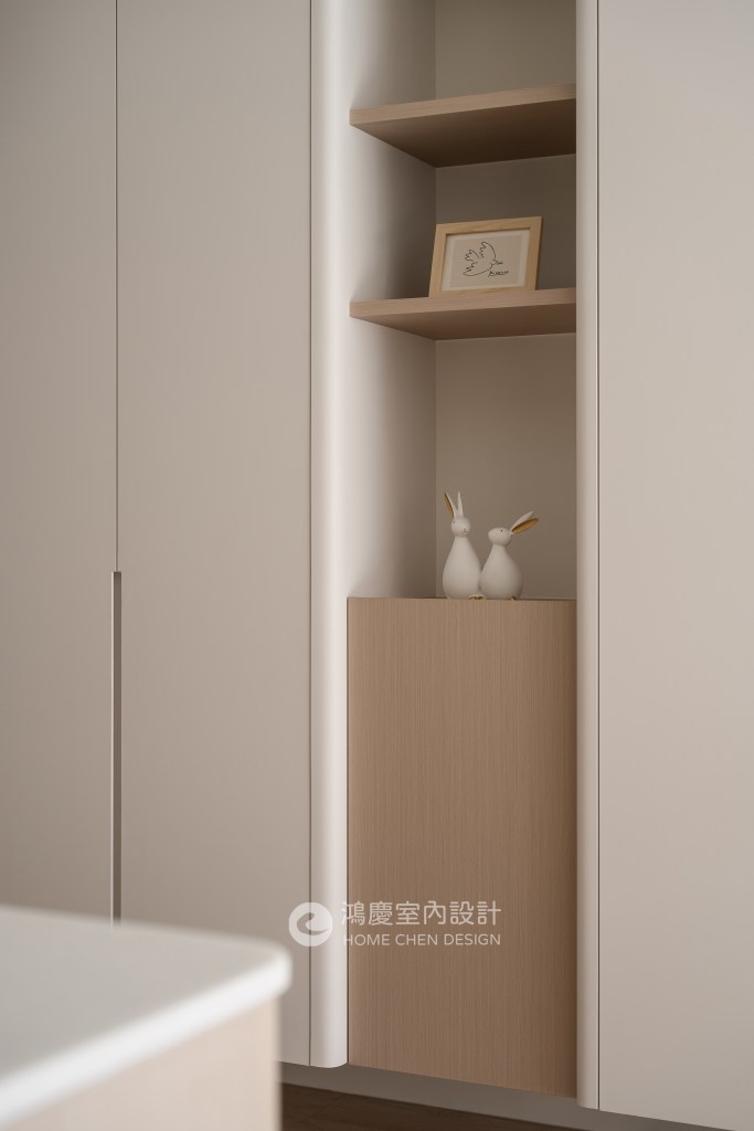 不只天花板,全室的櫃體皆採圓弧收邊處理,避免銳角造成小小孩的受傷。