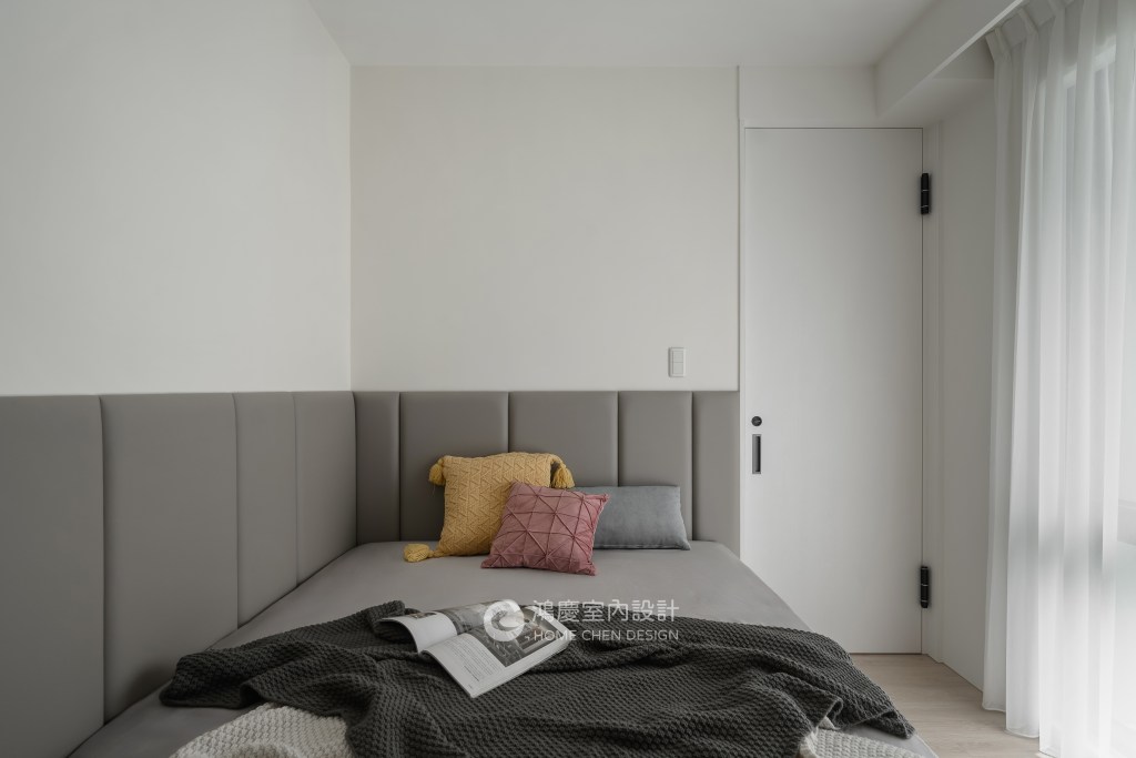 台北市的房子寸土寸金,在空間不大的環境中,沙發背牆隱藏門能兼顧美觀及整體性,達成更一致的空間感。